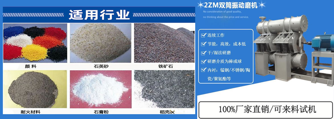 1.双筒振动磨机是以球或棒为介质的超微粉碎设备,在超微粉碎领域内占有重要优势。