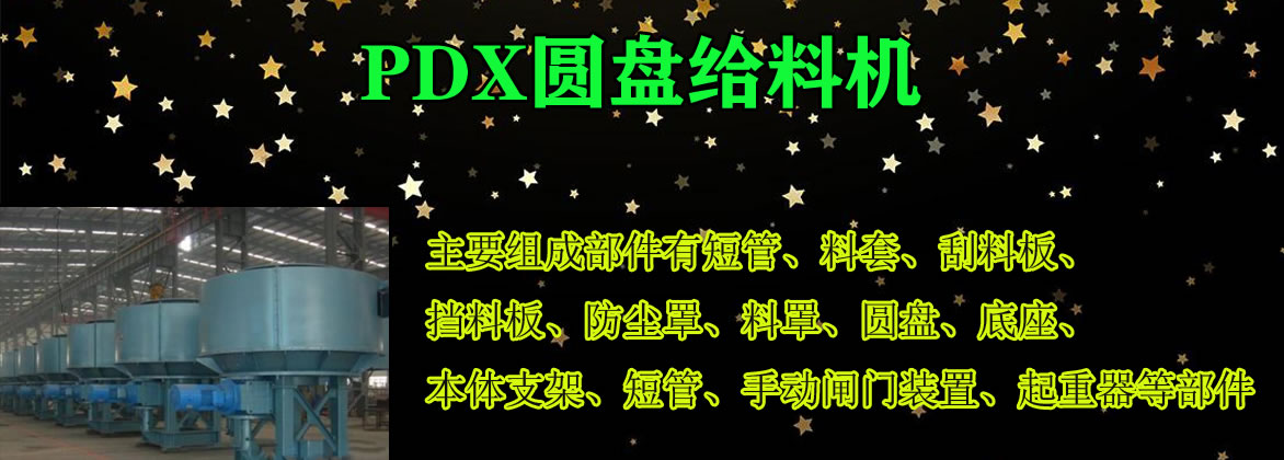 PDX圆盘给料机的主要组成部件有短管、料套、刮料板、挡料板、防尘罩、料罩、圆盘、底座、本体支架、短管、手动闸门装置、起重器(起吊设备用)、传动装置、圆形平滑圆盘盘面、底架、扇形出料口、刮刀装置、管道组装起重装置、落料导板组装等部件组成。给料圆盘随料仓的压力来自驱动装置的动力,通过内齿轮副的作用使圆盘作回转运动,从而使料仓的物料不断排出。内齿轮副加工简单,旋转体下部设有承受料仓压力的专用回转支承。